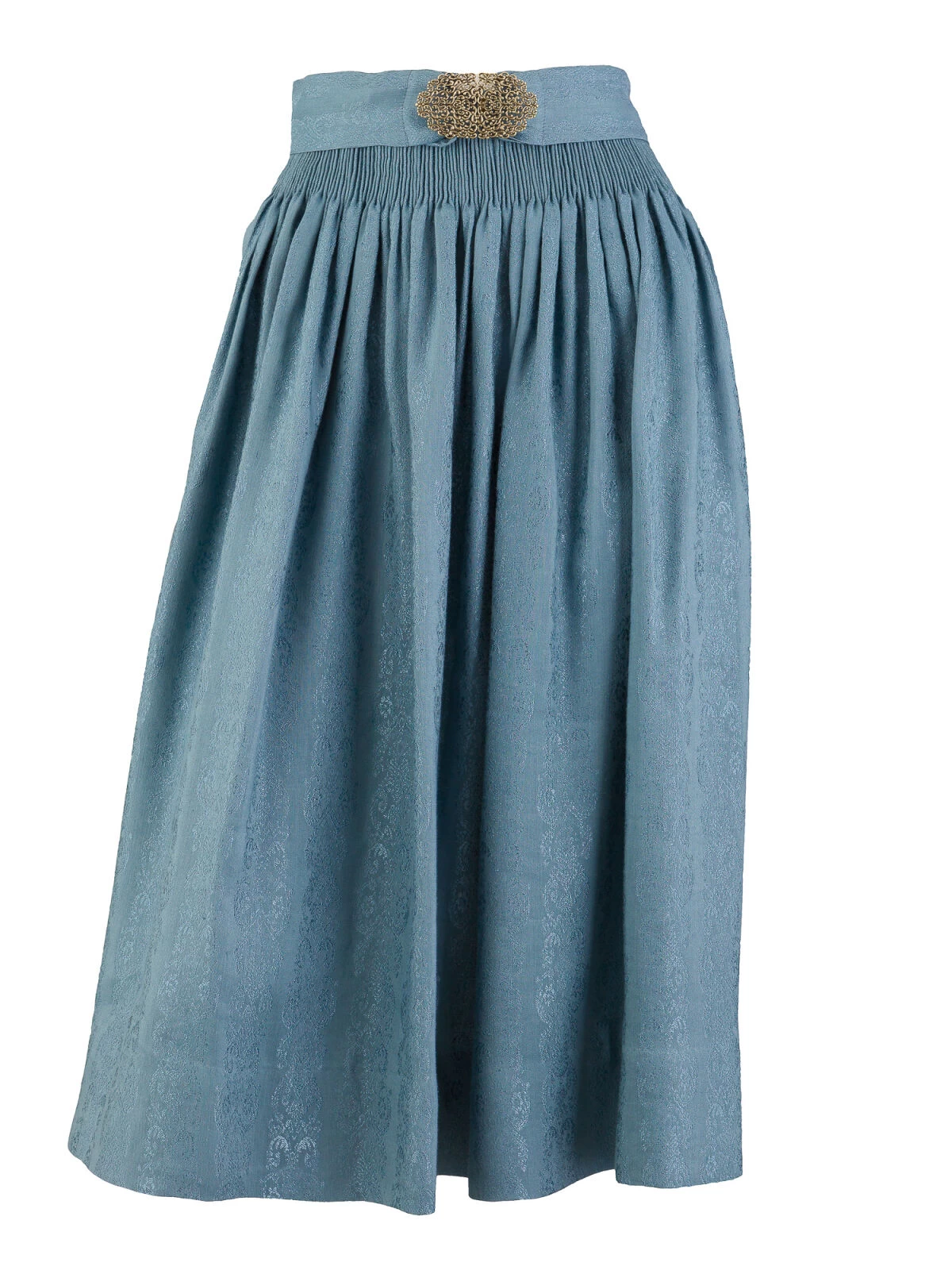 Die Schürze ist hochwertig gestiftelt und wird mit 2 Paar Schürzenbändern zum Wechseln geliefert, eines zum Binden und eines mit einer Altmessingschließe. Der Stoff ist in sich gemustert und verleiht dem Dirndl einen besonderen Charme.