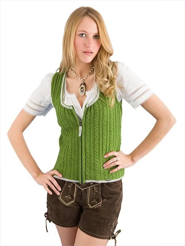Edles Trachtenmieder Anne der Marke Giesswein. Dieses schöne Strickmieder mit Zopfmuster im schönen grasgrün schmiegt sich bequem den Körper an. Vorne wir das Mieder mit einem 2 Wegereißverschluss geschlossen. Ein Lieblingsstück, dass nicht nur zur Lederhose sehr schön ist, sondern auch zur Jeans.