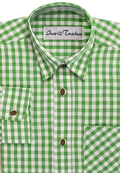 Das Kinder Trachtenhemd 52915 in der Farbe hellgrün ist aus 100% Baumwolle hergestellt. Eine Brusttasche und Hirschhornknöpfe zieren das Hemd.- Hersteller: Max Ederer Isar Trachten