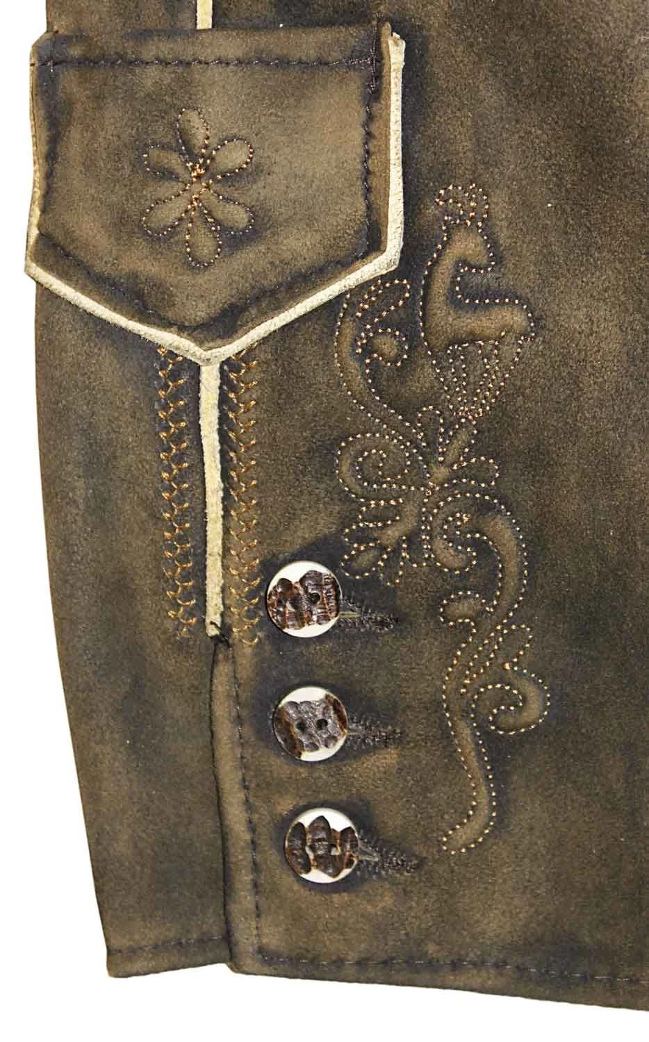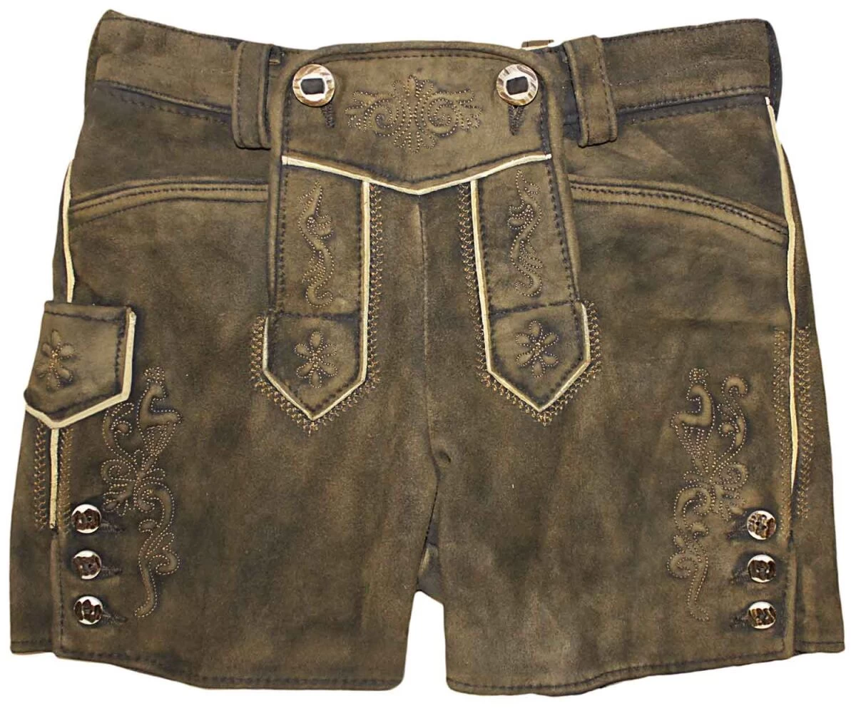 Hochwertige kurze Ledershort Nena Latz WB braun used der Marke da Wilderer. Das Leder der butterweichen Lederhose wurde von einem bayrischen Gerbermeister gegerbt. Hochwertige Verarbeitung und beste Qualität zeichnen diese schöne Lederhose aus. Die seitliche Länge ohne Bund beträgt 30 cm. Am 4 cm breiten Bund sind Gürtelschlaufen angebracht.