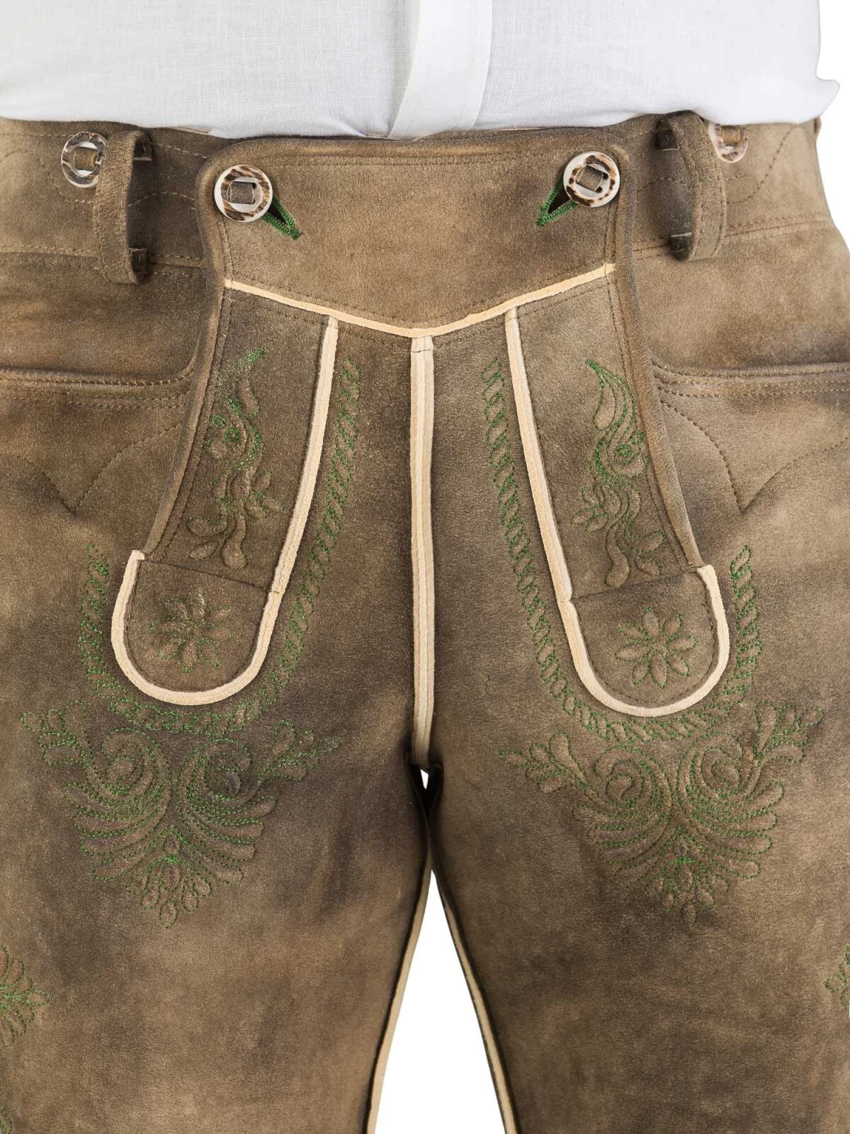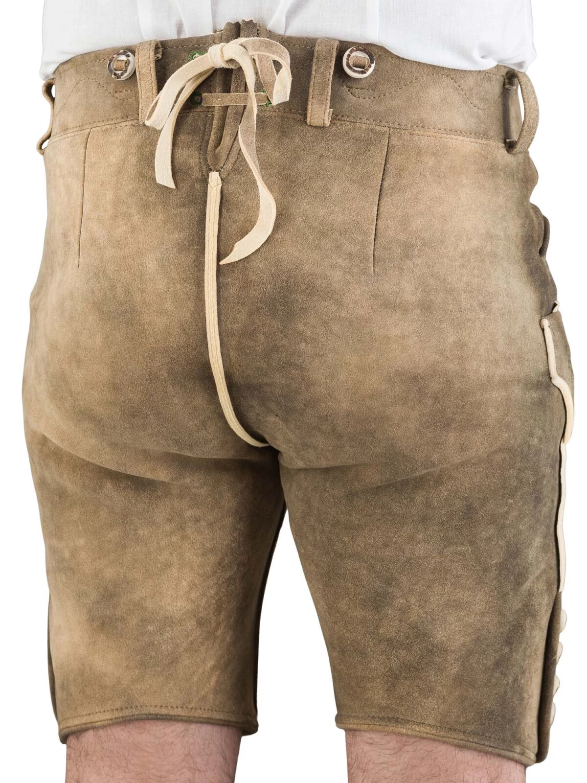 Eine Lederhose von Meindl entsteht in vielen Stunden Handarbeit. Die Traditionsfirma im bayerischen Kirchanschöring setzt seit über sieben Jahrzehnten auf Klasse statt Masse. Deutsche Spezialisten bearbeiten deutsche Häute vom Rothirsch für die Lederhosen mit einer Jahrhunderte alten Technik, die ohne Chemie auskommt. Nach dem Reinigen der Häute mit Salz und Kalk arbeitet man von Hand Dorschlebertran in das Leder ein, bis es vollkommen getränkt ist. Das ergibt die helle Farbe des Leders. Waschen und Abschleifen erzeugt anschließend die weiche, atmungsaktive Oberfläche der Lederhose. Sie hält den Träger kühl, auch wenn es im Bierzelt hoch hergeht.