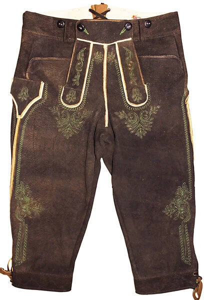 Ebenso ausgezeichnet wie das Material ist die Verarbeitung. Plastische Stickereien in traditionellem Grün heben Ornamente und Ziernähte vom Leder hervor. Schnürung an den Hosenkanten und im Rücken des Bunds ermöglichen es, die Lederhose immer wieder an die Körperform anzupassen. Sogar das Eintragen erledigen die Spezialisten der Firma Meindl für Sie. In einem streng geheimen Prozess erhält diese Kniebundhose die begehrte Patina, die eine Lederhose normalerweise erst nach jahrzehntelangem Tragen bekommt. Mit der Lederhose Salzburg machen Sie eine Investition, die Sie Ihr Leben lang freuen wird.