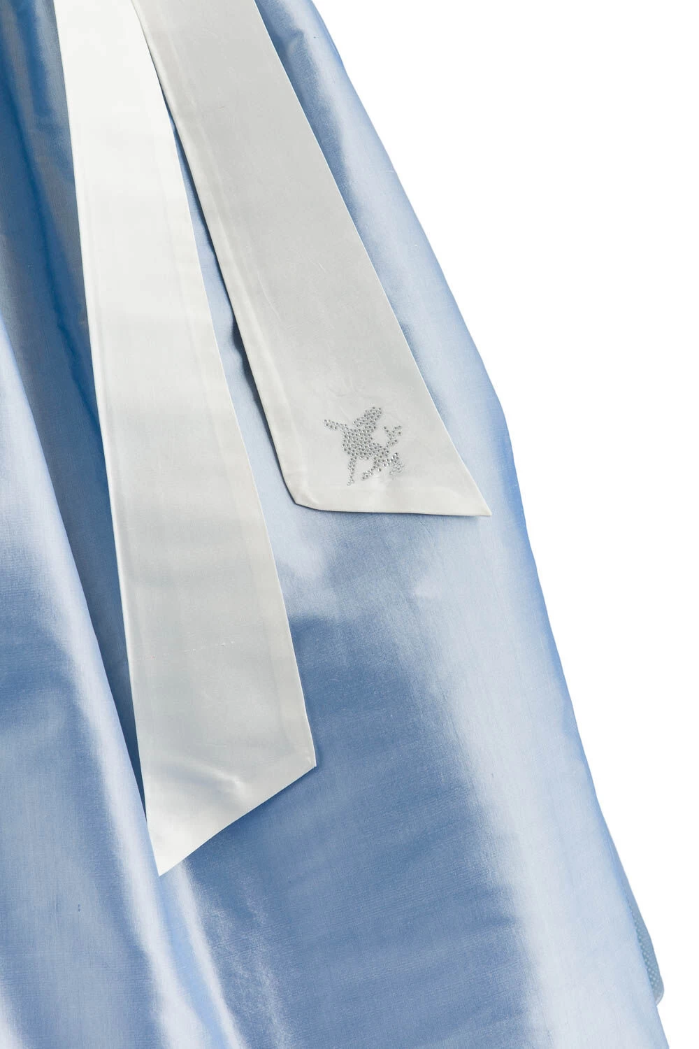 Hochwertiges Midi Dirndl Kallham blau der Marke Sportalm. Das Oberteil wird vorne mit einem Reißverschluss geschlossen. Der Zipper ist ein beiger Stein in Altmessing gefasst. Das Oberteil ist mit blauen Blümchen appliziert. Die hochwertige Seidenschürze mit dem beigen Seidenband wurde aus handgesponnener und handgewebter indischer Seide hergestellt. Der 70 cm lange Glockenrock ist am Bund angereiht und hat rechts eine Tasche eingearbeitet. Der Rocksaum ist mit einem blauen Seidenband paspeliert. Große handwerkliche Raffinesse, hohe Qualität und viel Liebe zum Detail zeichnen dieses schöne Sportalmdirndl aus.