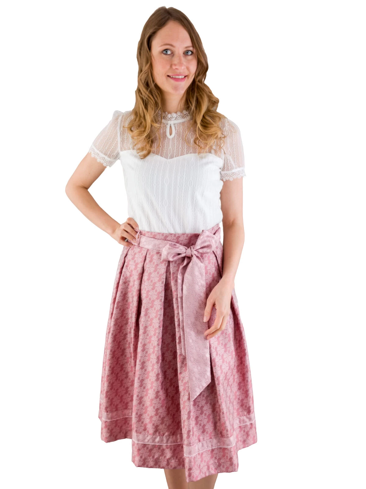 Zauberhafter Trachtenrock Modell Maike im aktuellen altrosa von der Marke MarJo. Die Kniebedeckte Länge von 65 cm passt für jedes