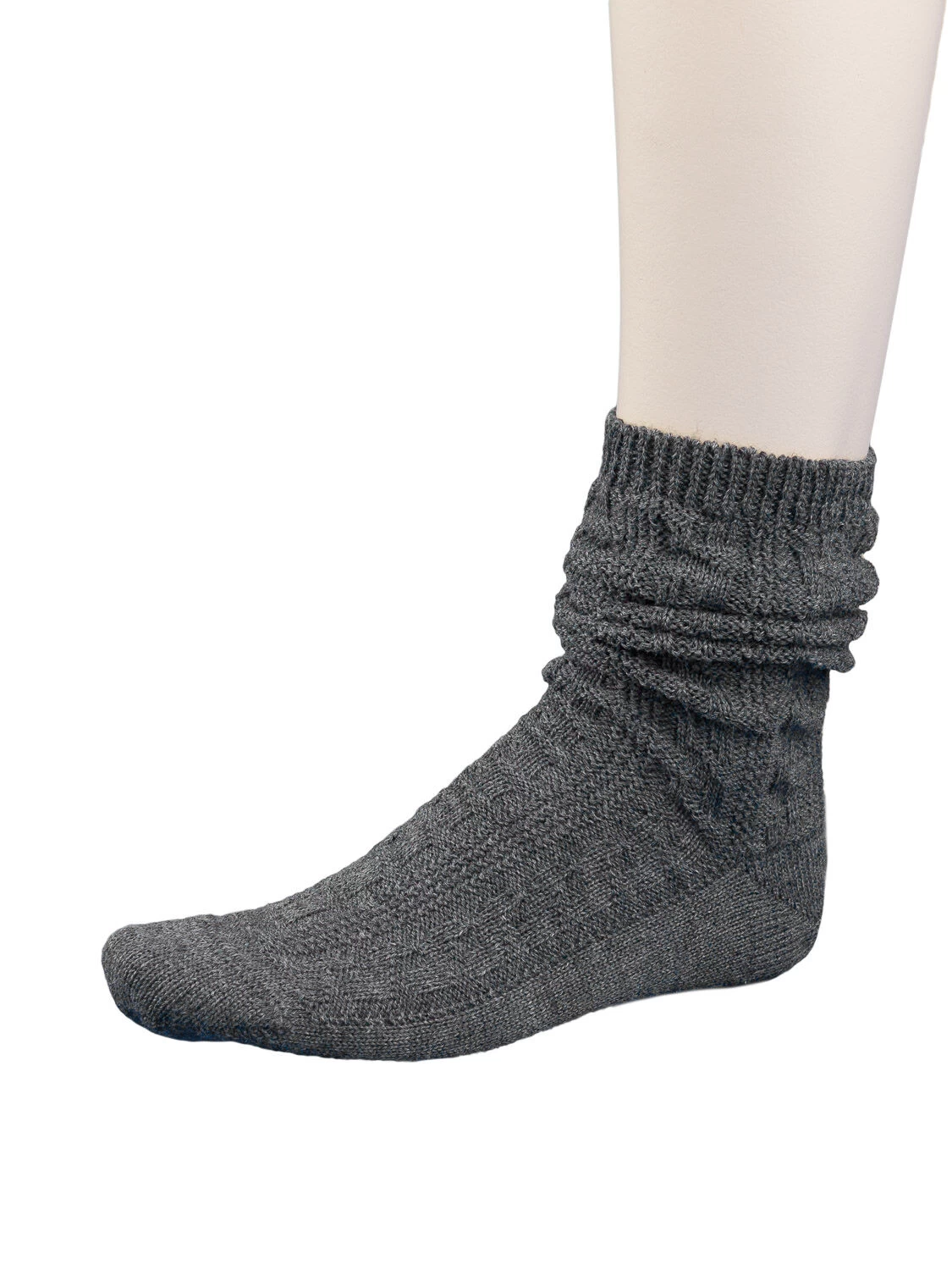 Hochwertiger Schoppersocke L5697 in der Farbe dunkelgrau des Markenherstellers Lusana. Der Strumpf ist besonders hochwertig, da Fersen und Spitzen verstärkt sind. Die Spitze ist zudem handgekettelt. Die feine Strickweise und das Merinowollgarn verleihen dem Trachtenstrumpf ein besonders feines Aussehen. Der Socke ist superwash ausgerüstet und verleiht durch hohe Atmungsaktivität einen sehr guten Tragecomfort.