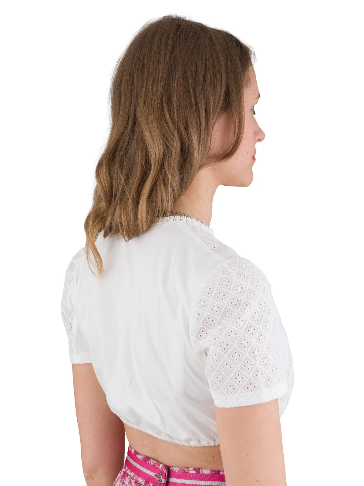 Die Dirndlbluse Theresa von Spieth & Wensky ist ein echter Hingucker. Der offwhite Farbton und der hochwertige bestickte Stoff machen die Bluse zu einem einzigartigen Kleidungsstück. Der kurze V-Ausschnitt und die schöne Baumwollspitze am Halsausschnitt machen die Bluse zu einem echten Highlight. Der elastische Stoff am Unterarm sorgt für einen angenehmen Tragekomfort.