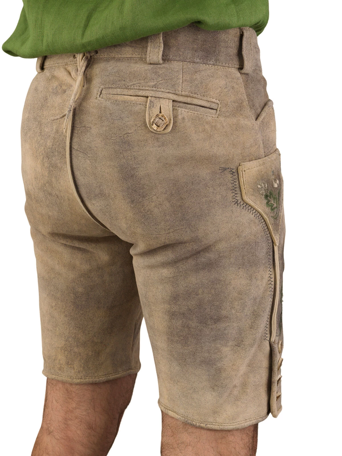 Der Beinabschluss der Lederhose ist mit stilvollen Knöpfen versehen, die einen Hauch von Eleganz und Raffinesse vermitteln. Dank der sämischen Gerbung des Leders ist die Lederhose äußerst geschmeidig und langlebig – ein wahrer Genuss für alle, die Wert auf Qualität und Komfort legen.