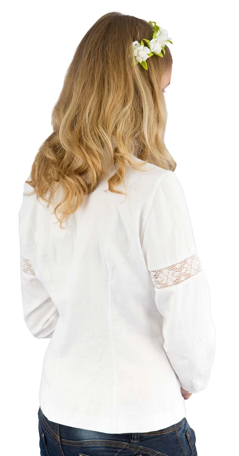 Wunderschöne Trachtenbluse Pauline weiß der Marke Gottseidank. Schöne Spitzeneinsätze zieren die Bluse mit dem 3/4 Arm. Der Stehkragen gibt der Bluse ihren eigenen Charakter. Ob zur Lederhose oder zur Jeans, mit dieser Stehkragenbluse haben Sie bestimmt sehr viel Freude! Sie wurde in der EU produziert.