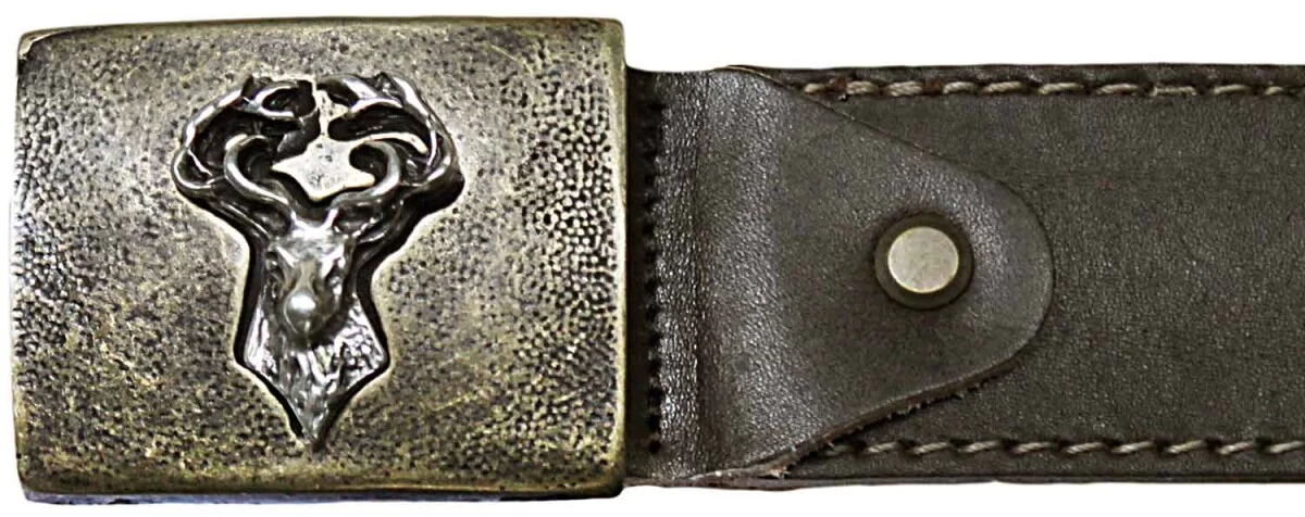 Der Trachtengürtel mit Messingkoppel wird in Deutschland von der Firma Cassandra hergestellt. Der Gürtel ist aus echtem, vollem Rindsleder gearbeitet und ist 4 cm breit und 4 mm dick.