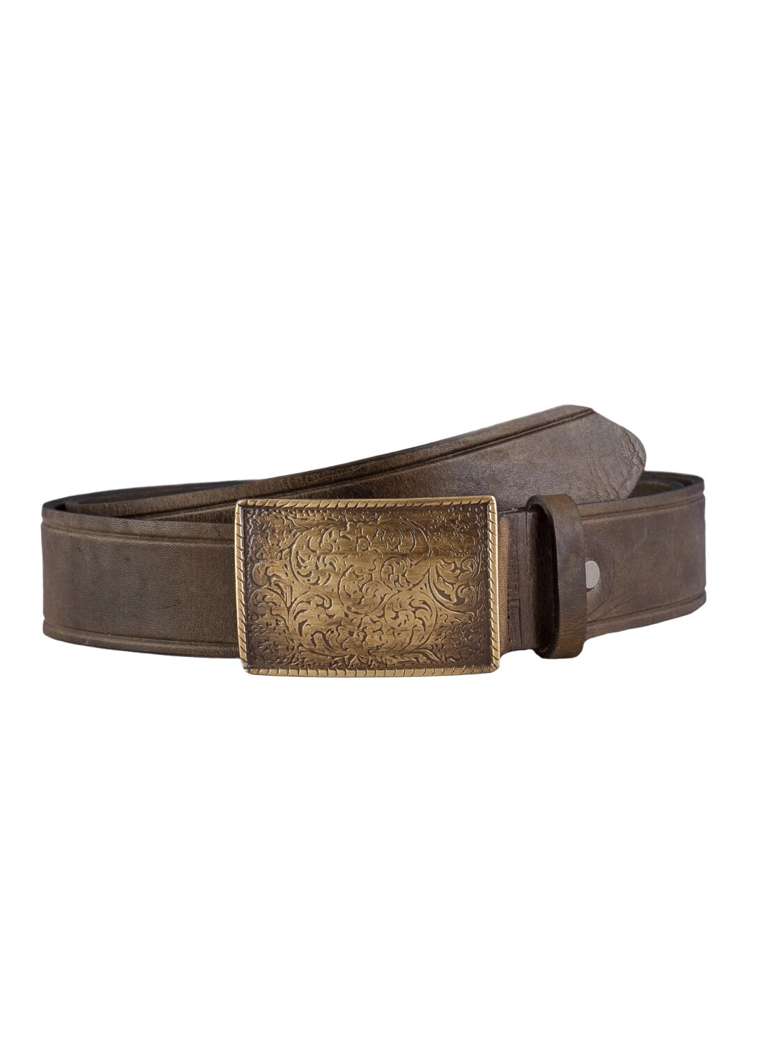 Hochwertiger Trachtengürtel 24134/40 echtes Leder in der Farbe used olivbraun von der Marke Der Trachtler. Die eckige Koppel aus Altmessing ist 7 cm x 5 cm groß. Der Lederriemen ist in einer schönen Usedoptik gefärbt. Die Länge kann leicht gekürzt werden, da die Koppel mit einer Schraube am Lederriemen angebracht ist. Der Gürtel ist nicht nur zur Lederhose schön, sondern auch ein Blickfang zu jeder Jeans.