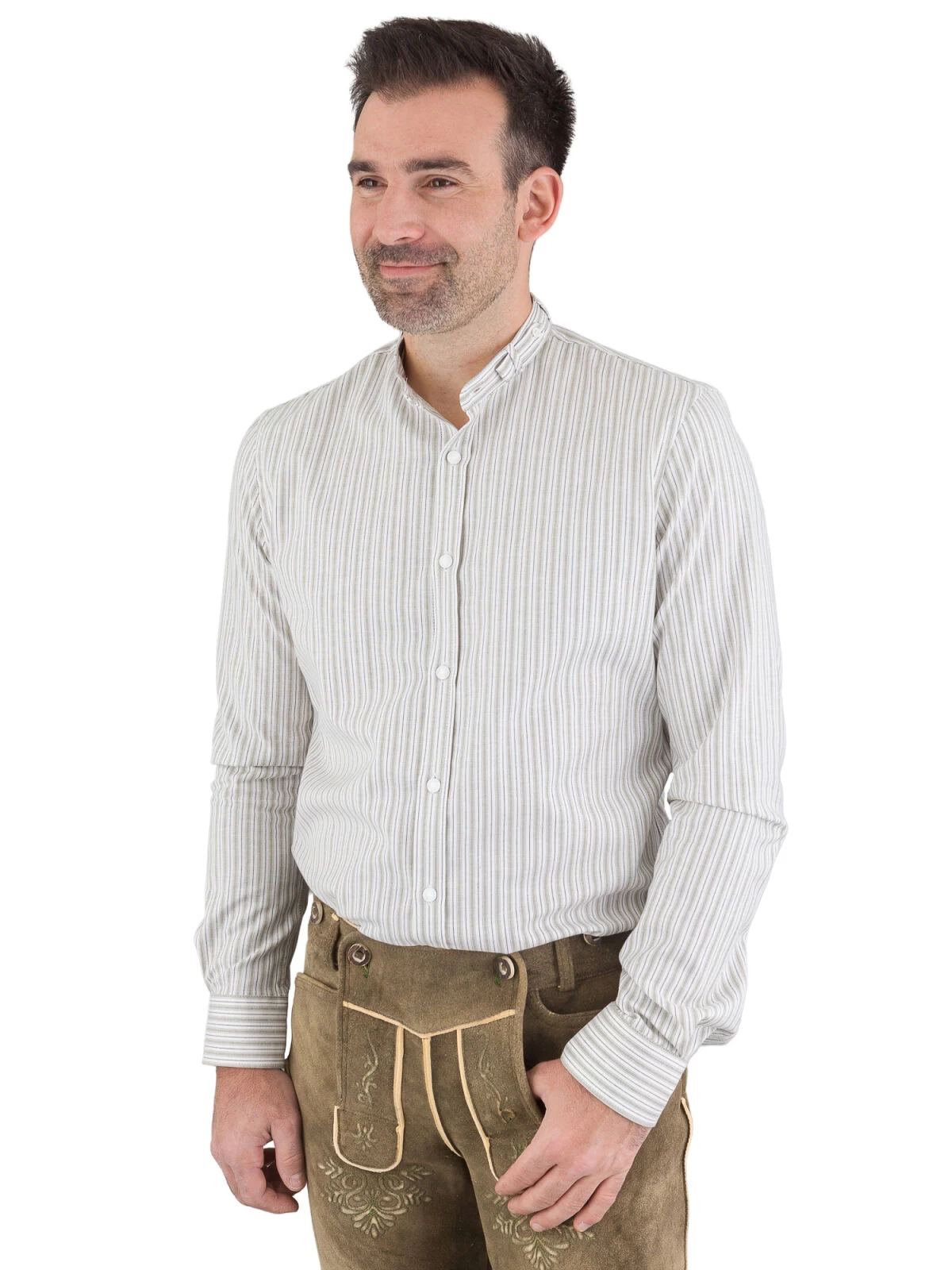 Das Trachtenhemd besteht aus 97 % Baumwolle und 3 % Elasthan, einer Materialkombination, die für höchsten Tragekomfort und eine ideale Passform sorgt. Das Hemd ist in einem wunderschönen moosgrünen Farbton gehalten, der Ihrem Outfit einen frischen, natürlichen Akzent verleiht. Die edlen Streifen unterstreichen dabei den eleganten Charakter dieses Hemdes.