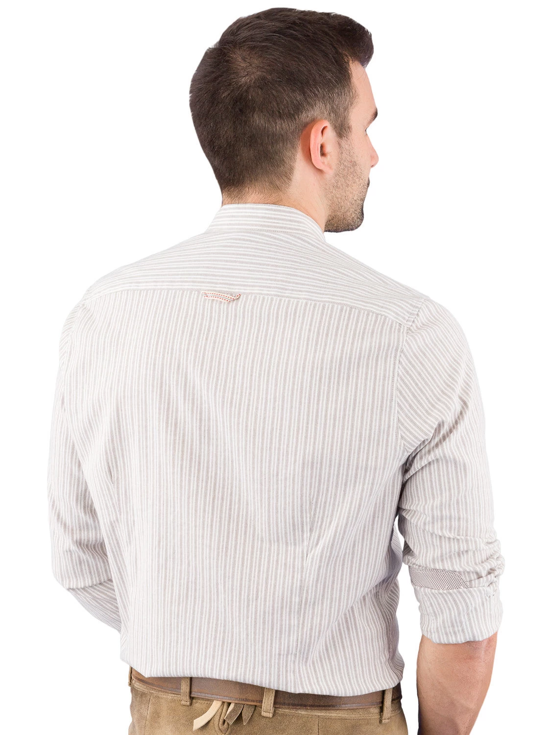 Trachtenhemd C62620-21616-264 Slim Fit, braun gestreift der Marke Pure. Das ursprüngliche Trachtenhemd mit typischen Wäscheknöpfen ist modern Slim Fit geschnitten und trägt sich durch einen Elasthan Anteil im Stoff sehr bequem. Das Baumwollhemd ist am der Brust mit einem weißen Hirschkopf bestickt. Das Stehkragenhemd ist am Kragensteg innen sowie den Ärmelbündchen innen mit einem braun getupften Stoff ausgearbeitet.