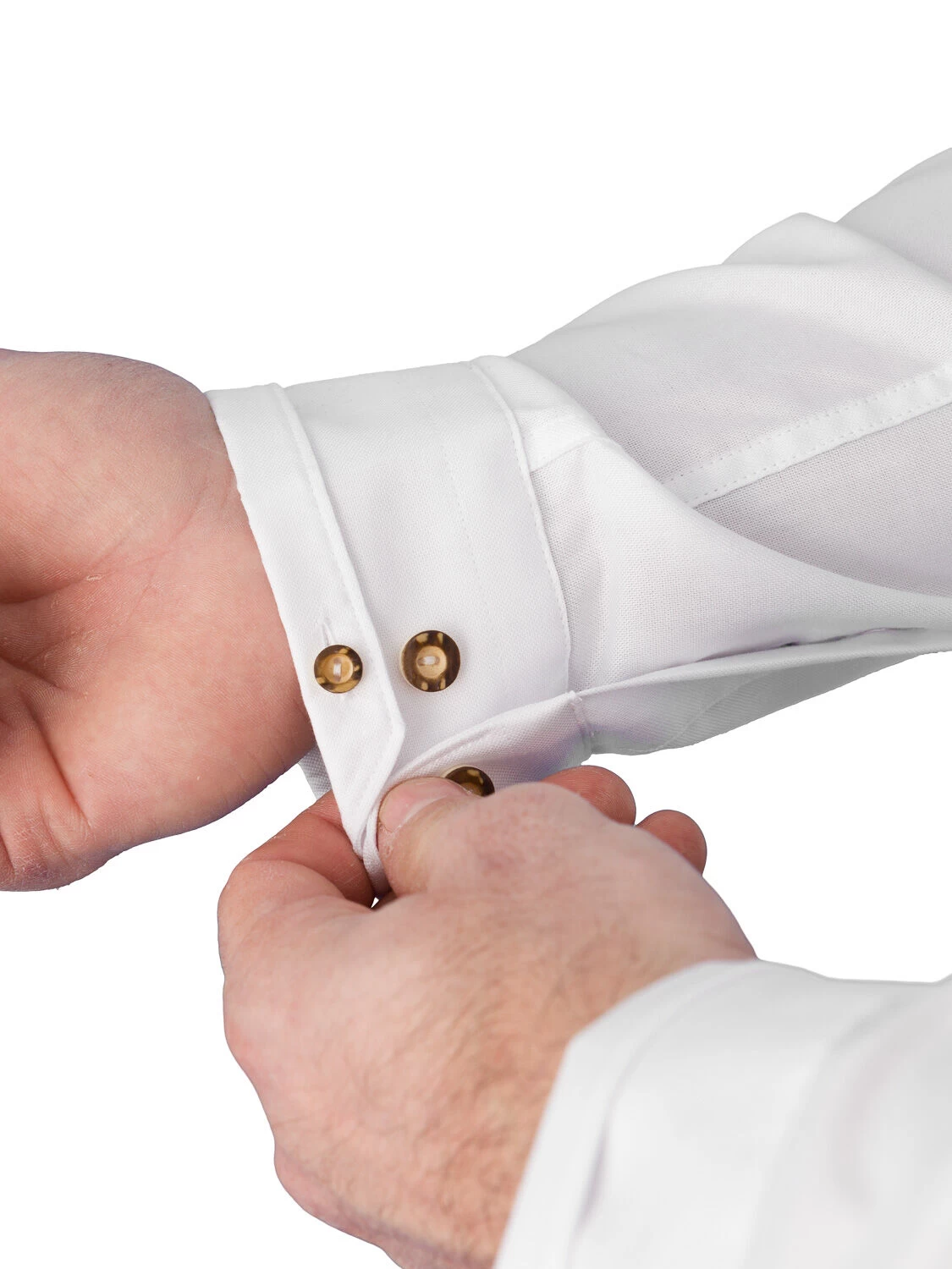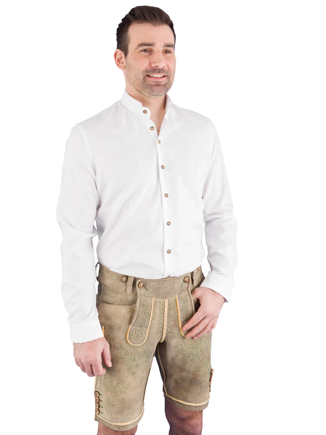 Stilvolles Trachtenhemd mit Stehkragen vom Markenhersteller Arido. Das hochwertig verarbeitete Hemd ist mit vielen liebevollen Details ausgestattet. Am Sethkragen ist links ein weißer springender Hirsch aufgestickt. Am ca. 30 cm hohen Stehkragen rafft nochmals ein ca. 1/2cm weißer Kragen hervor. Die Ärmelbündchen sind ca. 1/2 cm breit umgeschlagen und mit einem kleinem Hirschhornknopf festgeknöpft. Das festliche Hemd ist aus 100% hochwertiger, pflegeleichter Baumwolle gefertigt und trägt sich super angenehm. Wer das Hemd körpernah tragen will, sollte besser eine Nummer kleiner bestellen, da es einen Modern Fit Schnitt hat.Bitte Größentabelle beachten und Maße mit einem gut passenden Hemd vergleichen.