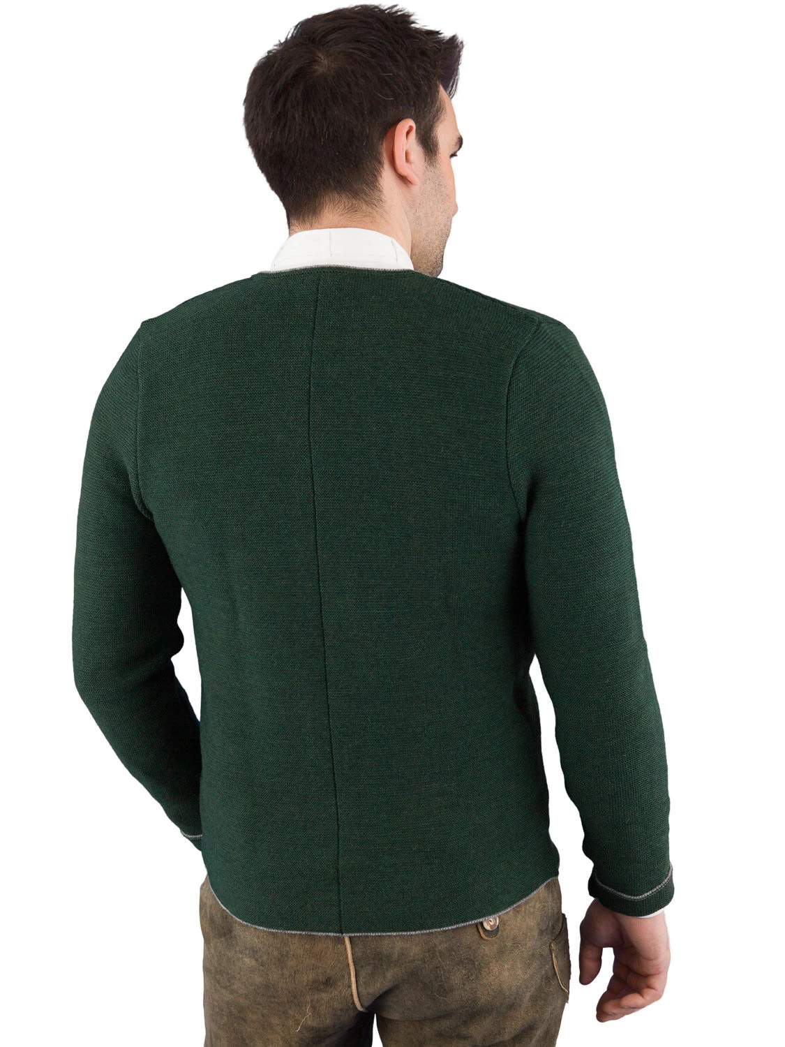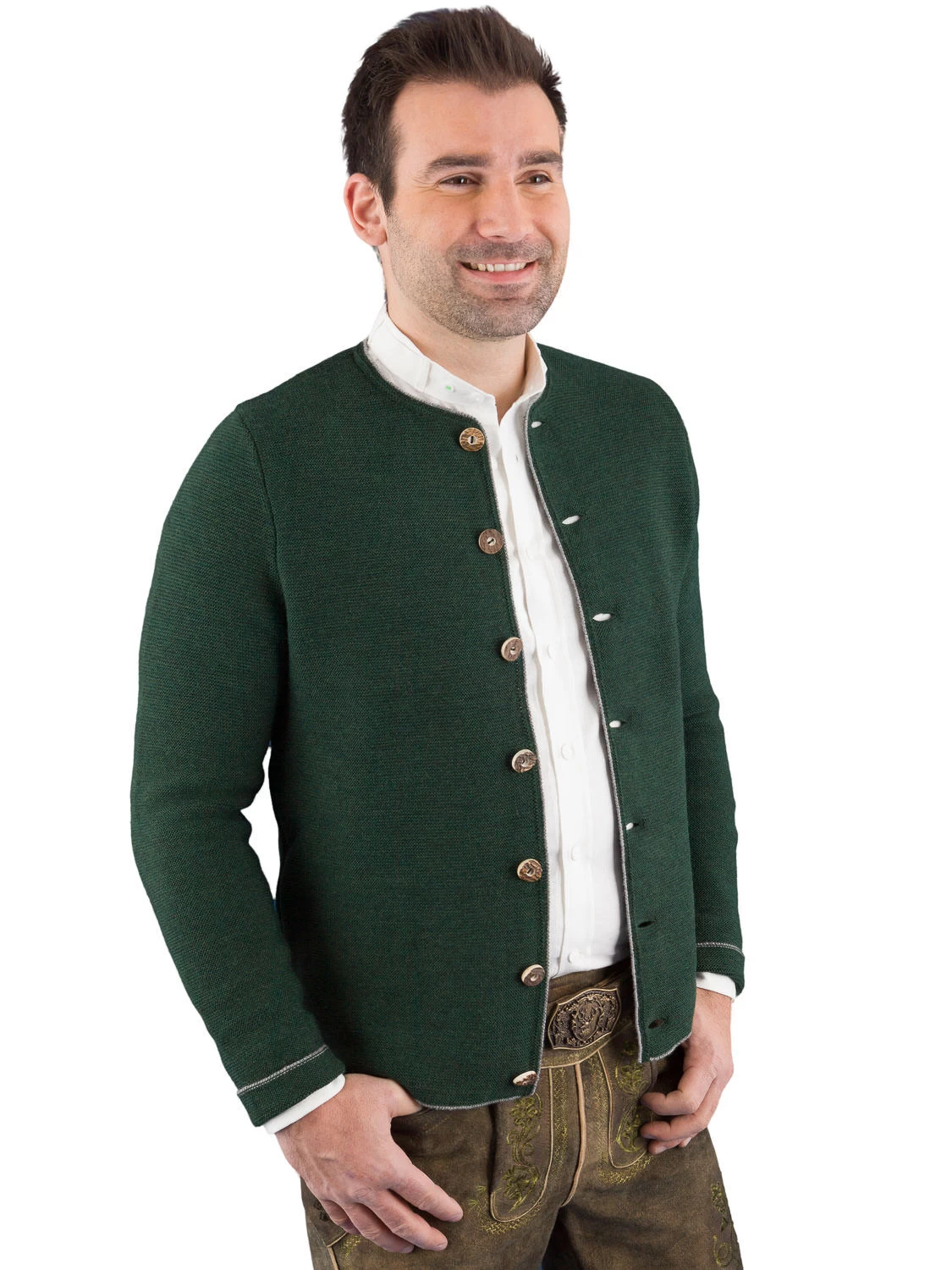 Hochwertige Strickjacke Aloisius in der Farbe tanne/kies der Marke Gottseidank. Die aus hochwertiger Schurwolle in Deutschland hergestelle Jacke ist sehr schmal geschnitten. Sie soll aber auch sehr eng getragen werden. Die Rückenlänge bei Gr. M beträgt 65 cm.