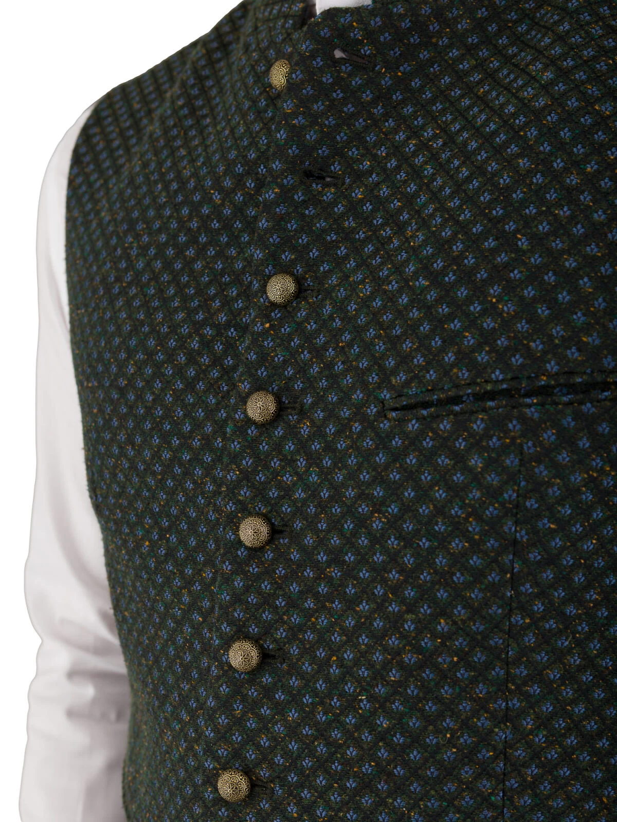 Stilvoll und traditionell – das ist die Trachtenweste Konstantins von Gottseidank. Für den modernen Mann, der Tradition schätzt und Wert auf ein elegantes Aussehen legt, ist diese Weste die perfekte Wahl. Die blaue Farbfamilie und das geblümte Muster machen sie zu einem Hingucker.