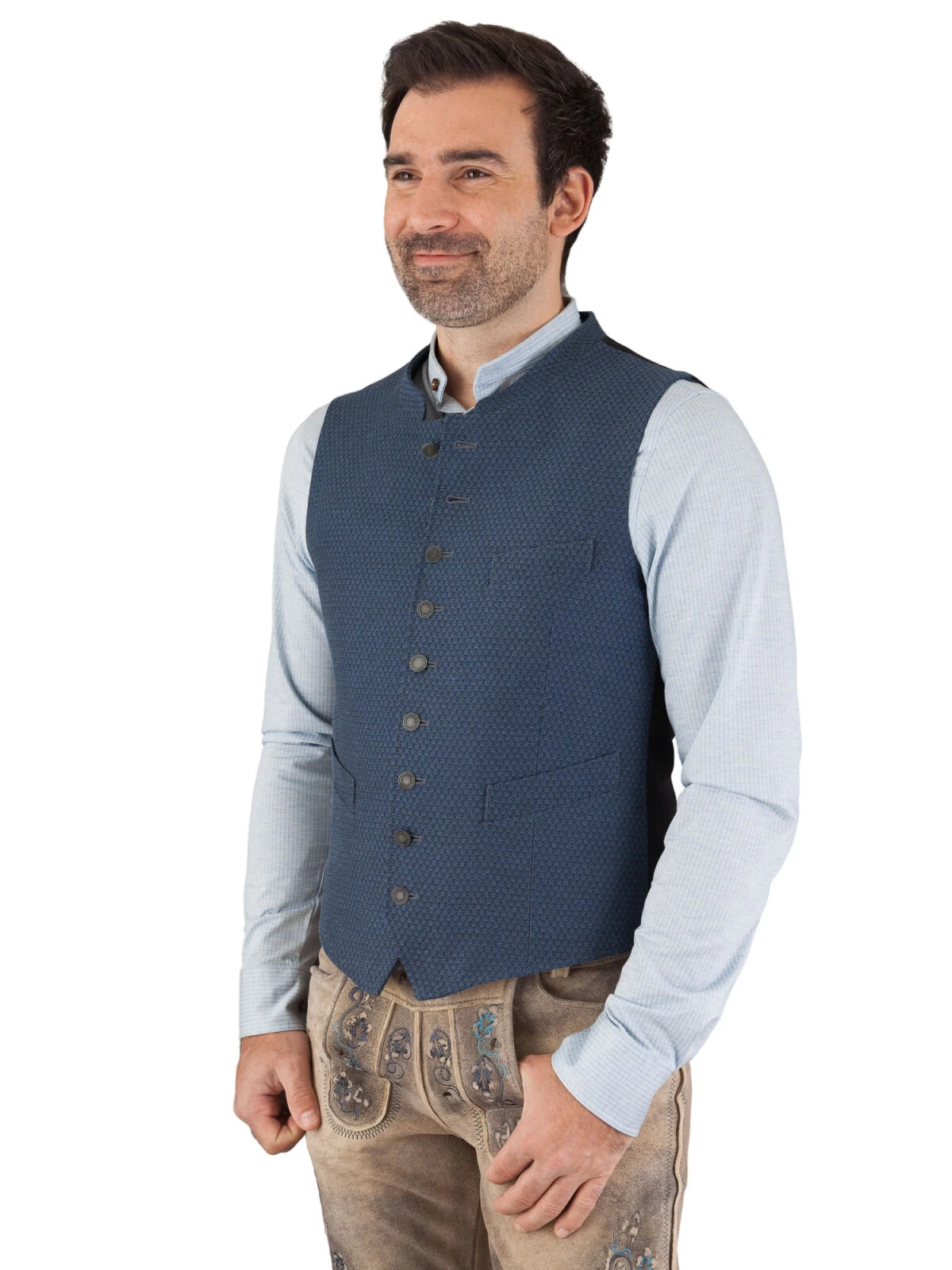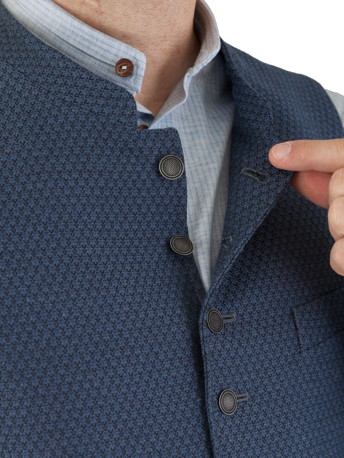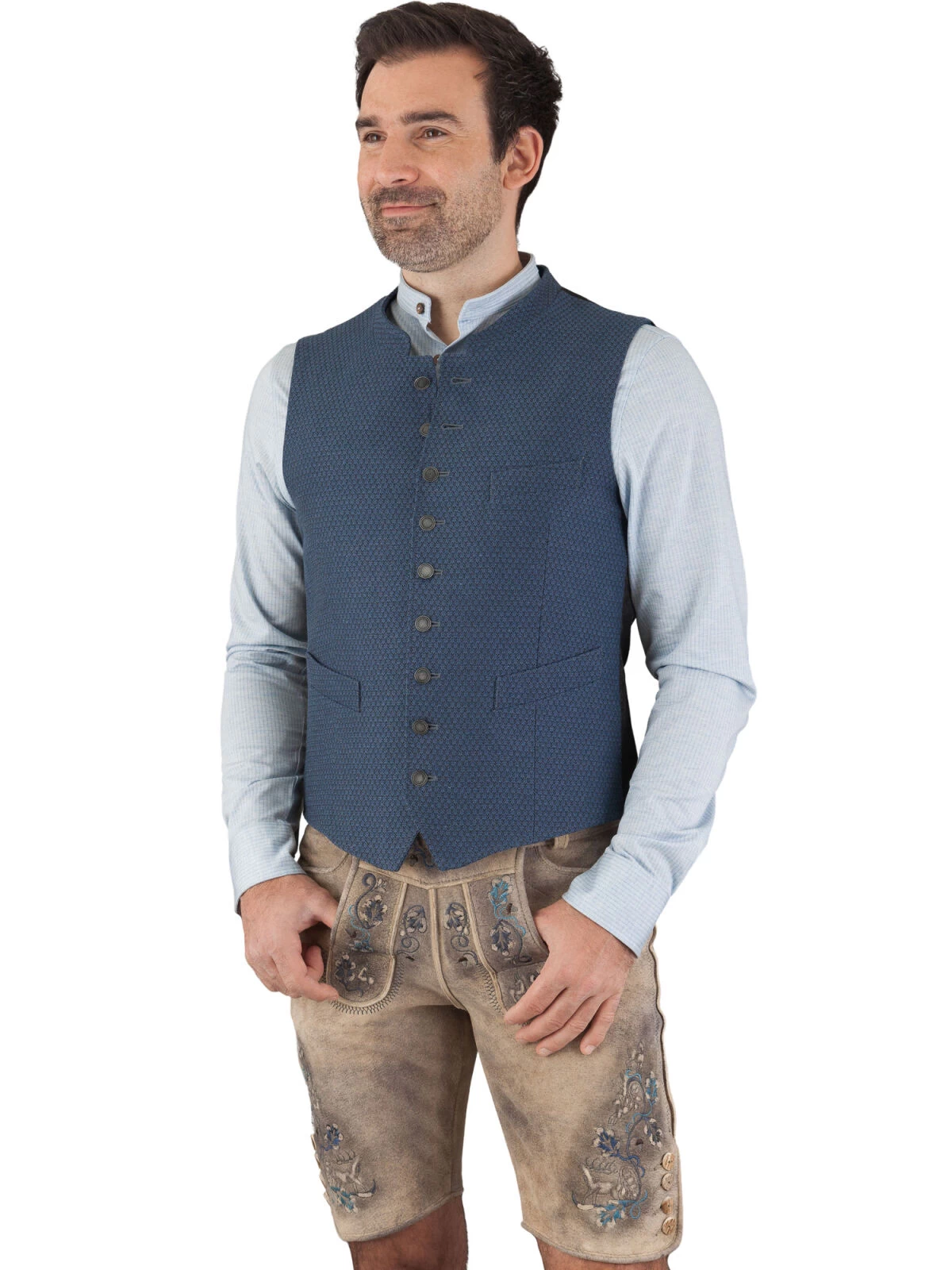 Entdecken Sie die Magie des zeitlosen Stils und der präzisen Handwerkskunst, eingefangen in unserer Trachtenweste Gweih & Silk Pegnitz in eleganter Blaufärbung. Ihre Sinne werden sich an der feinen Mischung aus 66% Baumwolle und 34% Polyester erfreuen, ein Material, das Komfort und Langlebigkeit in perfekter Harmonie bietet.