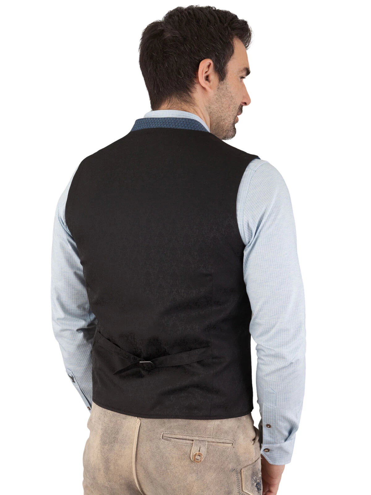 Funktionalität wird groß geschrieben: Dank der cleveren Spange auf der Rückseite lässt sich die Weite der Weste perfekt anpassen. So wird die Trachtenweste Gweih & Silk Pegnitz zu Ihrer persönlichen zweiten Haut.
