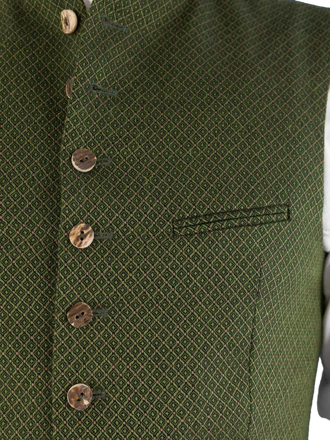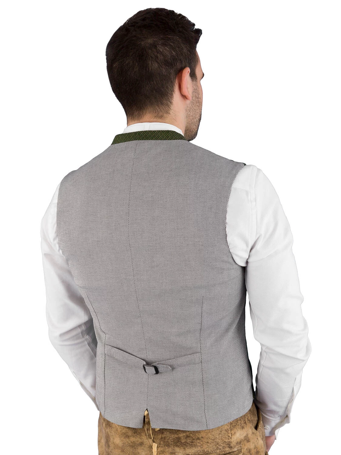 Trachtenweste KonstantinNS in der Farbe holunder der Marke Gottseidank. Die Weste ist mit einem Stehkragen Ton in Ton, sowie Paspeltaschen Ton in Ton ausgestattet. Die Knopflöcher sind Augenknopflöcher. Der Stretchrücken ist in Salz – Pfeffer gehalten und hat eine Spange an der Taille zum Verstellen. Die Knöpfe sind echte Hirschhornknöpfe.