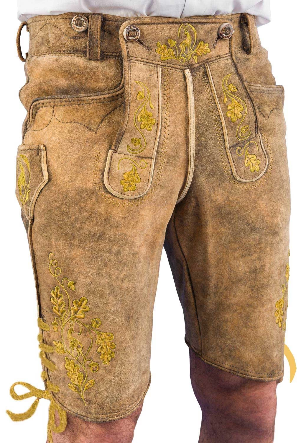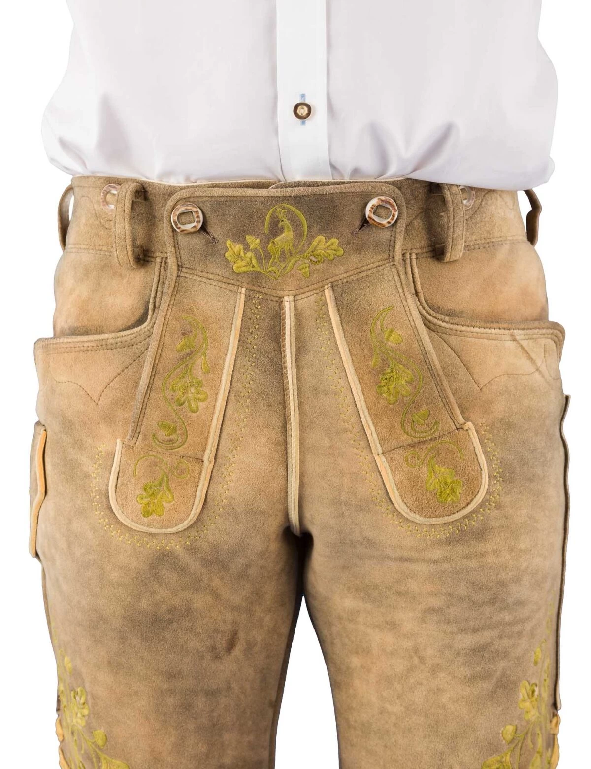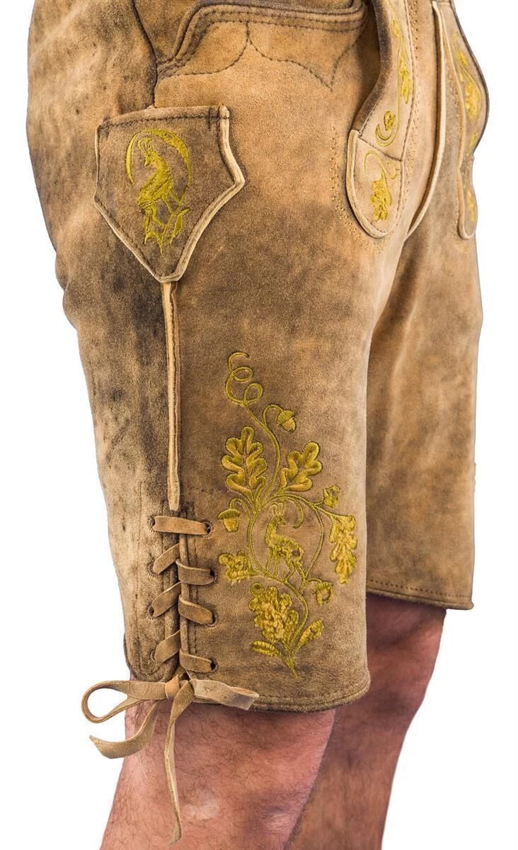 Ebenso erstklassig ist die Verarbeitung. Wulstige Säcklernähte zeigen das Innere des Leders, sind ein Zeichen für hervorragende Lederhosen und halten eine Ewigkeit. Hirschhornknöpfe sind mit Lederbändern angenäht. Schnürungen an den Hosenbeinen und im Rücken sorgen dafür, dass Sie die Lederhose immer wieder Ihrem Körper anpassen können. Die Lederhose Wildschütz ist eine Investition, die sich durch Tragekomfort und Langlebigkeit auf jeden Fall auszahlt.
